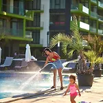 The beachfront Apartament Sunshine By Alz Navodari hotel sits approximately 5 minutes' walk from the Mackerel Mamaia Nord Park and offers a restaurant. This 3-star aparthotel, located merely 1.8 km from Navodari Beach, boasts a heated swimming pool along with a steam room, a hot tub, and a sauna.